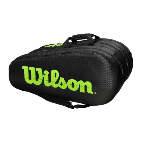 - 3 Main compartments for equipment and apparel – up to 15 racquets.
